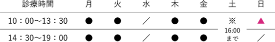 ▲:休日診療 10:00〜14:00(予約制)